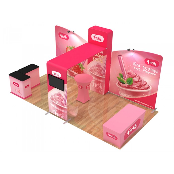 Are you interested in creating an exhibit booth that will be the #1 eye-catcher at your next event? Attract attention and build brand awareness with our custom 10x20ft booth designs. Our aluminum-framed booths are manufactured to be easily transported and dismantled, offering an efficient option for advertising at any event.
