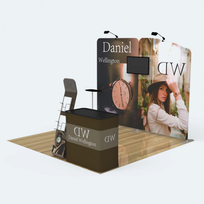 Are you interested in creating an exhibit booth that will be the #1 eye-catcher at your next event? Attract attention and build brand awareness with our custom 10x10ft booth designs. Our aluminum-framed booths are manufactured to be easily transported and dismantled, offering an efficient option for advertising at any event.